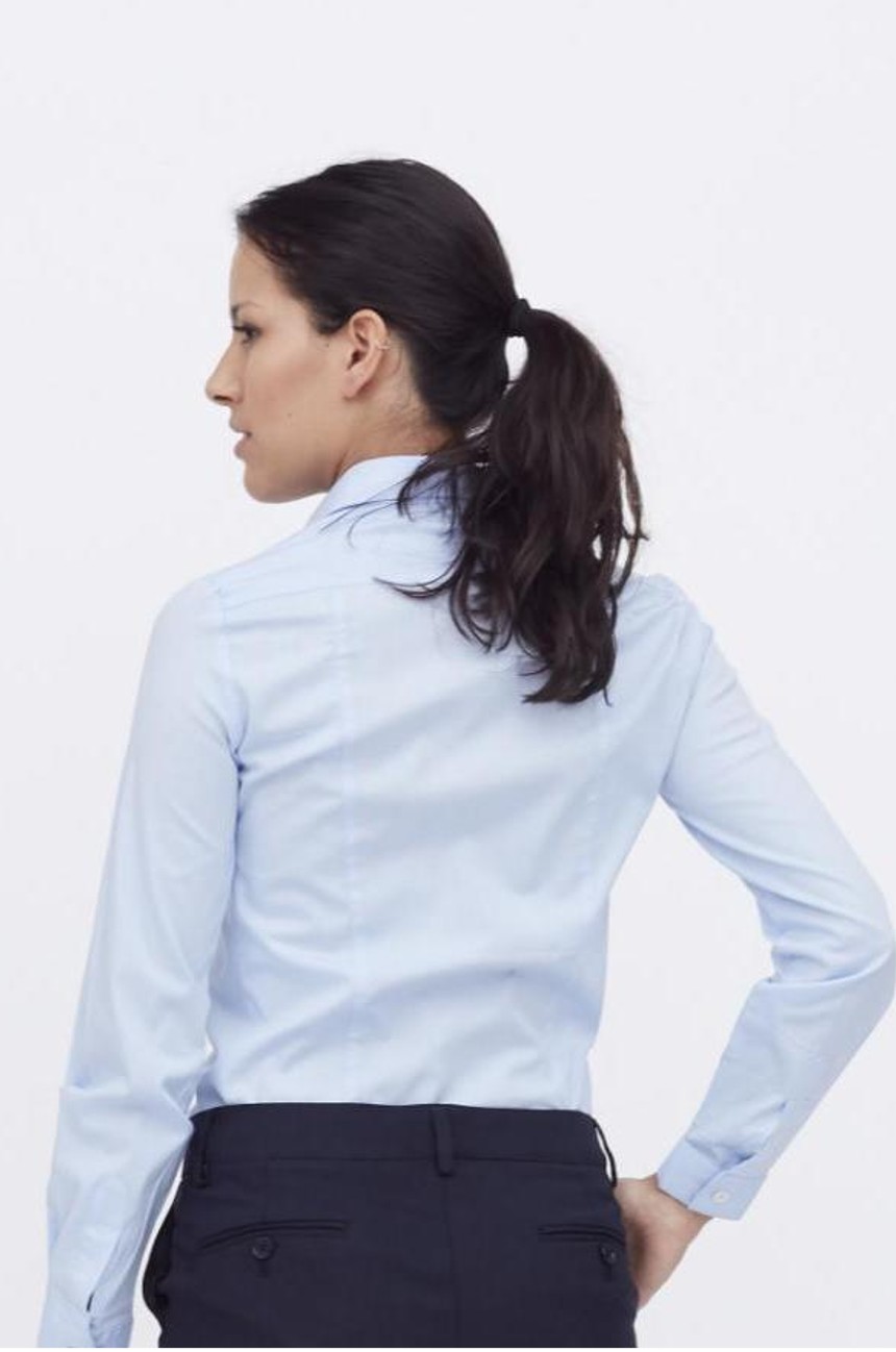 Camisa lisa, confeccionada en algodón 97% con elastán 3% que aporta gran confortabilidad. Realizada con nuestro patrón Slim para ensalzar la figura. Cuello corte italiano y cierre mediante botonadura frontal, manga larga terminada en puño sesgado con cierre de un botón.