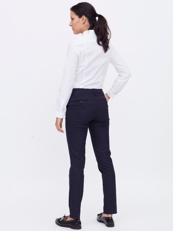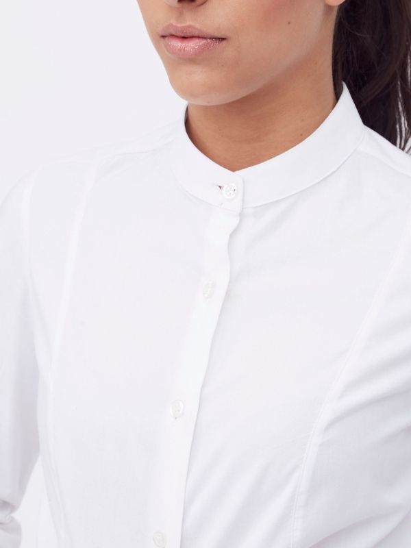 Camisa lisa, confeccionada en una suave mezcla de algodón 97% y elastán 3%, que aporta comodidad y libertad de movimiento. Diseñada con nuestro patrón Slim Fit, que realza la silueta. Presenta cuello mao, cierre mediante botonadura frontal y manga larga acabada en puño sesgado con cierre de un botón.