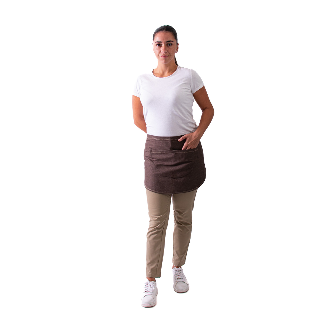 Mandil Corto Redondo, confeccionado en una resistente mezcla de 71 % algodón, 26 % poliéster y 3% otras fibras, que combina durabilidad y comodidad. Su diseño estilo denim con bajo redondeado aporta un toque moderno y diferenciador, garantizando al mismo tiempo libertad de movimiento y comodidad.Disponible en dos colores —marrón y verde—, con unas medidas de 38 cm de largo por 85 cm de ancho. Una prenda versátil, práctica y con estilo, perfecta para profesionales que buscan una imagen actual y funcional. .