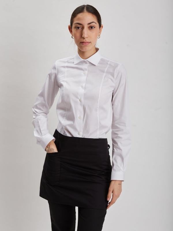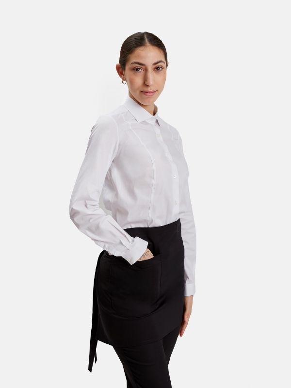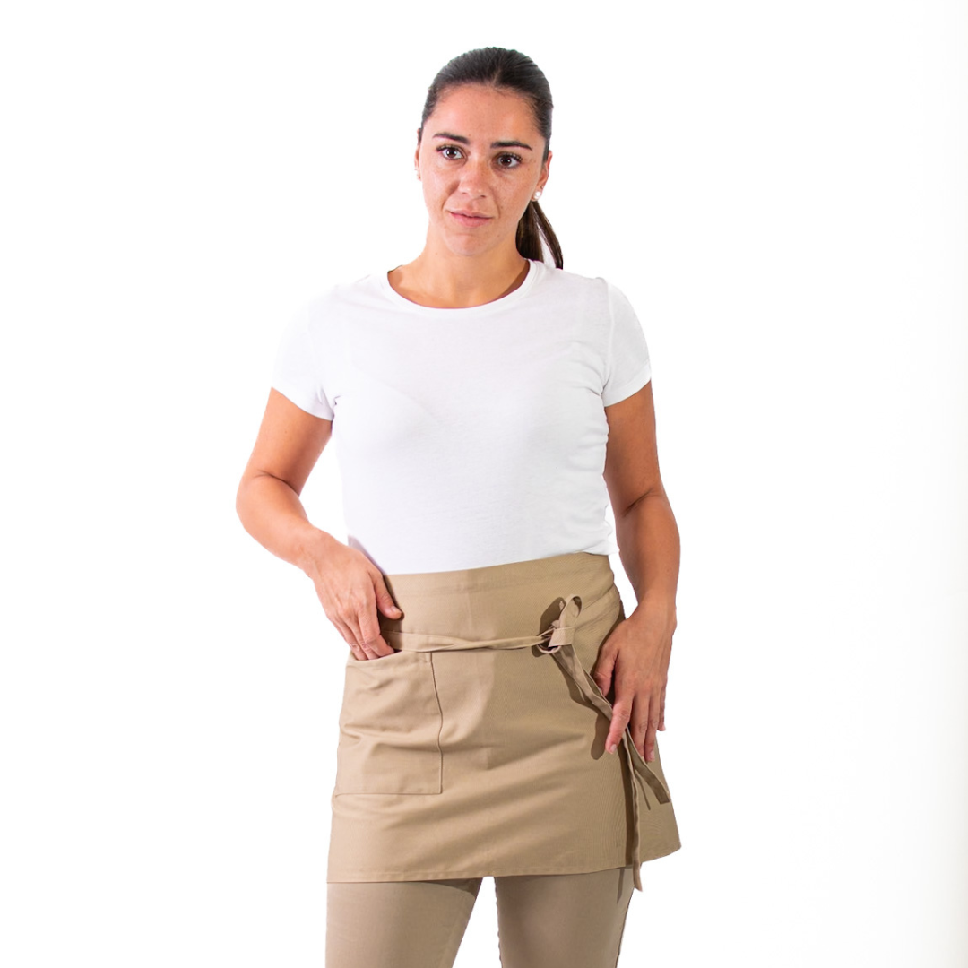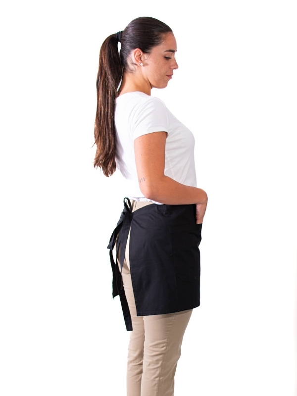 Mandil Corto Un Bolsillo, confeccionado en una resistente mezcla de 65 % poliéster y 35 % algodón, que ofrece durabilidad, confort y fácil mantenimiento. Su diseño corto y ligero con posibilidad de atar delante o trás, garantiza libertad de movimiento, ideal para entornos de trabajo dinámicos. Cuenta con un práctico bolsillo lateral, perfecto para guardar utensilios o accesorios esenciales, además con unas medidas de 38 cm de largo por 88 cm de ancho y disponible en varios colores, es una prenda versátil, funcional y moderna, diseñada para profesionales que buscan comodidad y estilo en su jornada laboral.