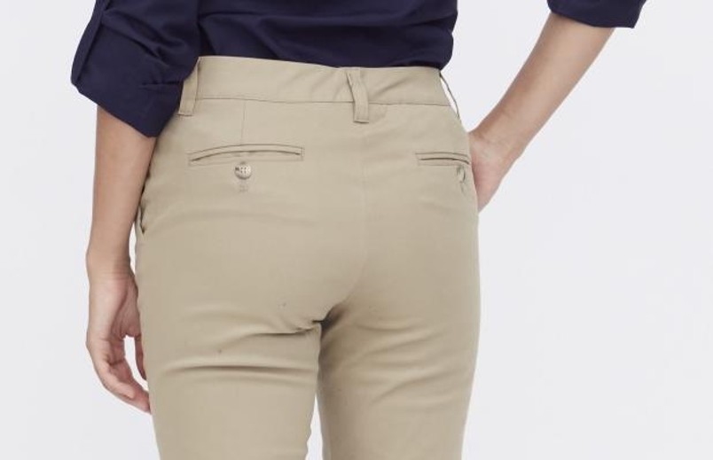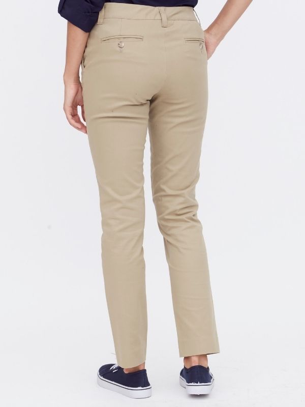 Pantalón chino de mujer, confeccionado en 97% algodón y 3% elastán, que ofrece comodidad, flexibilidad y un ajuste favorecedor. Incluye pinzas traseras que perfilan la silueta y bolsillos franceses laterales, junto a bolsillos traseros de ojal con botón. Las trabillas en la cintura permiten el uso de cinturón. Un diseño clásico y versátil, perfecto para un look femenino, cómodo y elegante, ideal tanto para el trabajo como para el día a día.