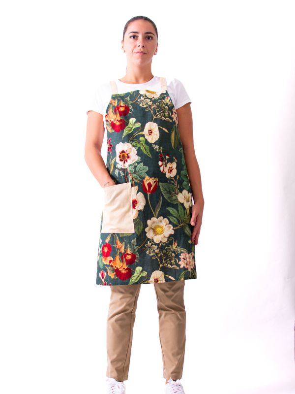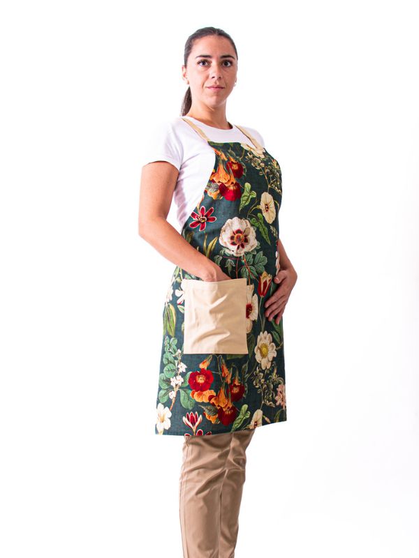 Peto Flores, confeccionado en 100 % algodón, que ofrece suavidad, confort y transpirabilidad durante toda la jornada. Su diseño con estampado floral y detalles en beige aporta un toque delicado y elegante, ideal para quienes buscan una prenda funcional sin renunciar al estilo. Con un largo de 83 cm, ancho de 66 cm y espalda cruzada garantiza una cobertura cómoda y libertad de movimiento. Una opción versátil y actual, perfecta para añadir color y frescura al entorno laboral.