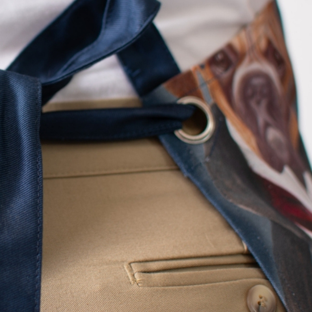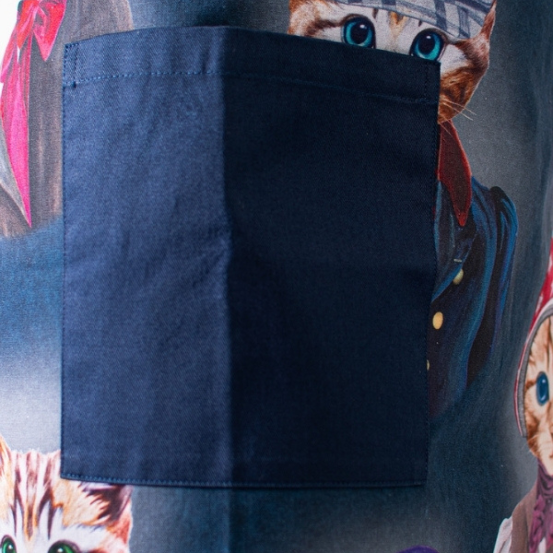 Peto Perros y Gatos, confeccionado en 100 % algodón, un tejido natural que ofrece suavidad, transpirabilidad y confort durante toda la jornada. Su estampado con detalles en azul añade un toque divertido y distintivo, ideal para entornos profesionales que buscan un estilo más cercano y original. Con un largo de 83 cm y ancho de 66 cm con espalda cruzada, garantiza comodidad, libertad de movimiento y una excelente cobertura. Una prenda práctica y con personalidad, perfecta para quienes disfrutan de su trabajo con una sonrisa.